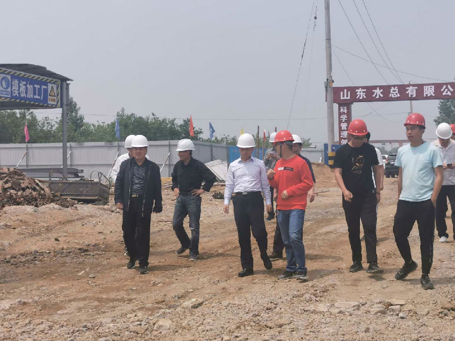 2020年5月15日,山东省水利厅副厅长王祖利一行到我公司承建的枣庄市薛城区蟠龙河匡山头闸工程检查督导工作。枣庄市水务局局长闫维松、枣庄市重点水利建设管理处领导陈敏强、省水利设计院院长高峰、水发设计代建单位负责人李海军、鸿禹工程监理有限公司总监张宗超、3044永利匡山头闸项目负责人孔凡昌等陪同。