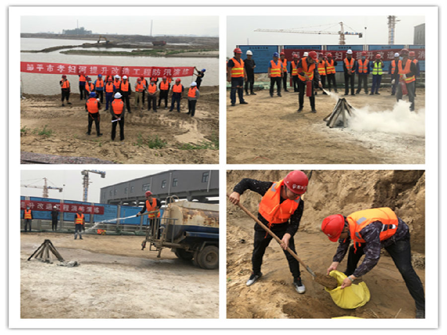 邹平市孝妇河提升改造工程项目部消防防汛应急演练