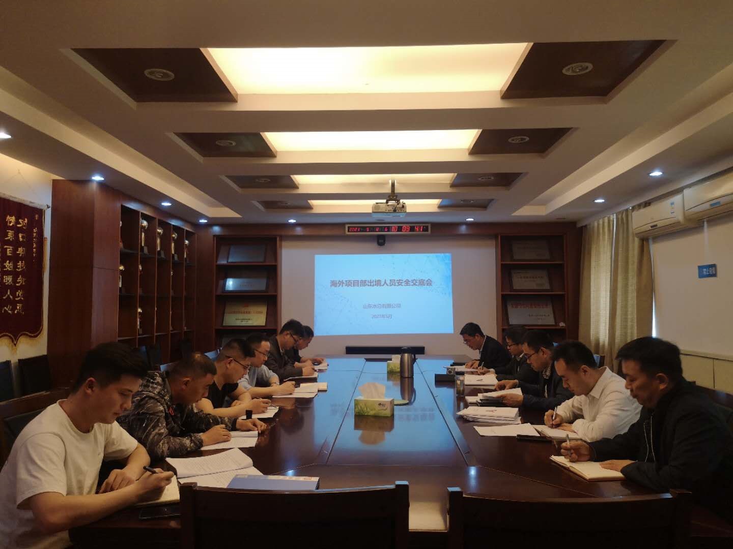 5月8日上午,公司在7楼会议室召开了海外项目部出境人员安全交底会,公司相关领导、相关部门负责人、海外项目部全体人员参加了会议。