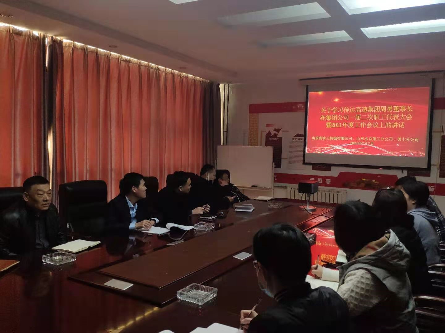 山东省水工机械有限公司、3044永利第三分公司、第七分公司传达学习集团党委书记、董事长周勇同志在2021年度工作会议上的讲话