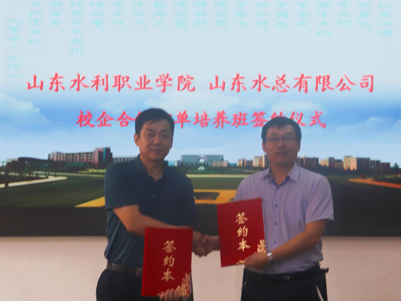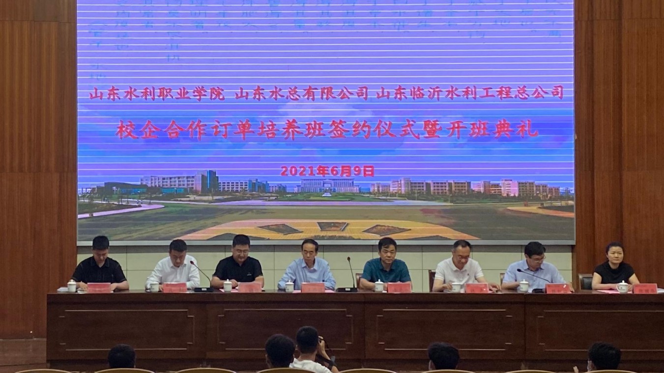 6月9日上午10时,3044永利-山东水利职业学院校企合作订单培养班签约仪式暨开班典礼在山东水利职业学院行政楼举行。公司党委副书记、总经理李光市,山东水利职业学院党委委员、副校长王启田,水利工程系主任甄红锋,水利工程系党总支书记孔彪,订单培养班的全体同学共同出席开班典礼。