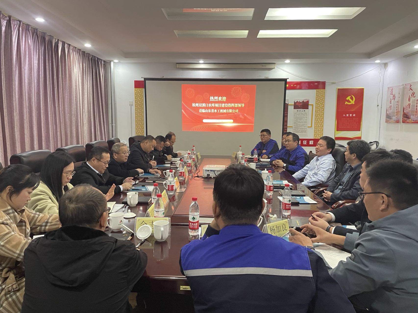 11月13日-14日,杭州市临安区双溪口水库工程建设指挥部副总指挥、水利水电局党委副书记刘保法等一行莅临水工机械公司考察指导工作,3044永利党委副书记、董事、总经理靳文硕,党委委员、副总经理付海华,第六分公司、杭州鲁润公司等相关人员陪同考察。