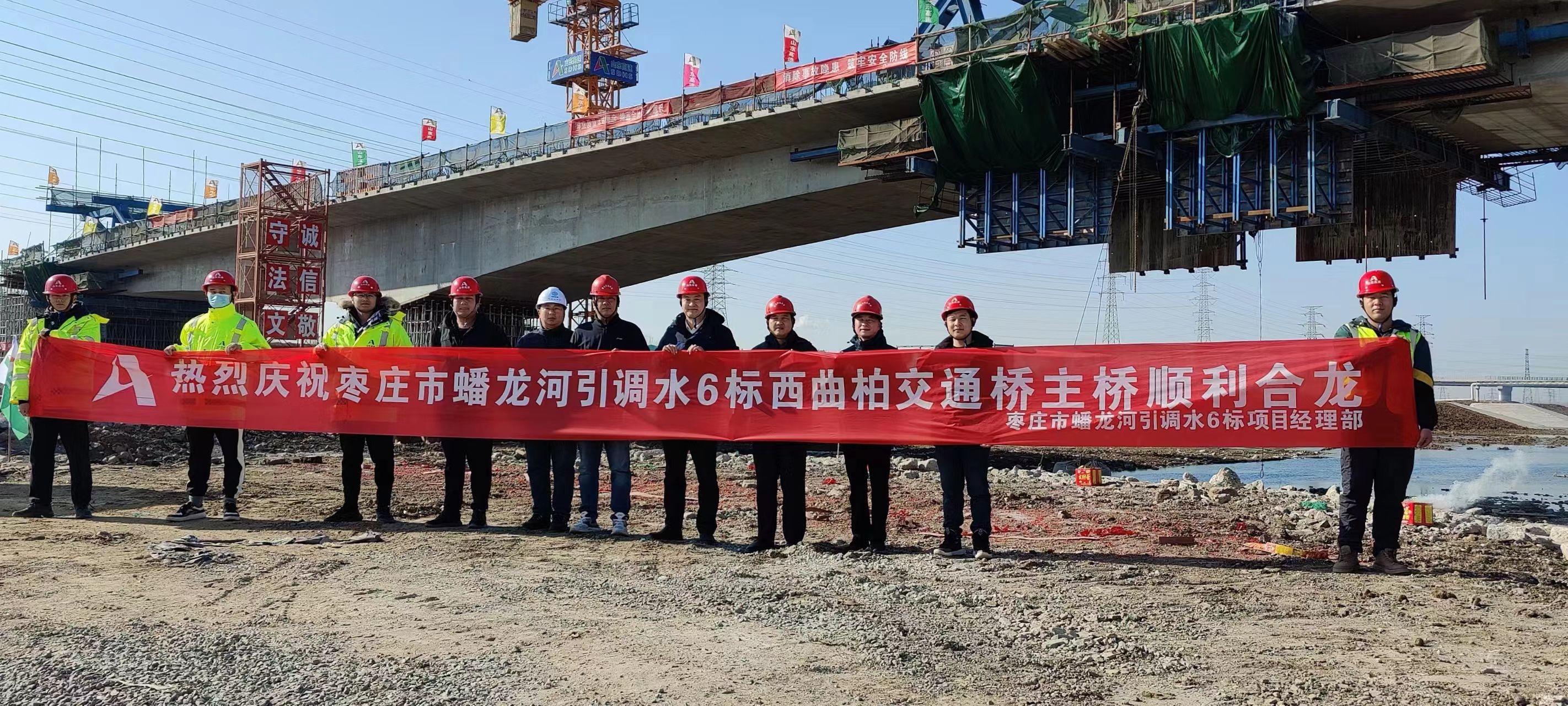 1月10日上午10时,由基础有限公司承建的枣庄市蟠龙河西曲柏交通桥主桥顺利合龙。