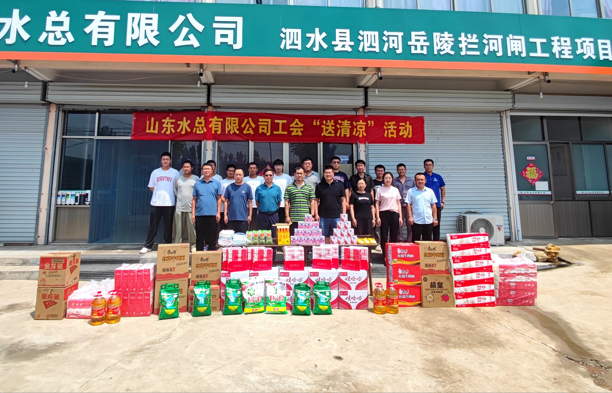 公司安全总监郭法文等到泗水县泗河岳陵闸项目开展2023年“送清凉”慰问活动