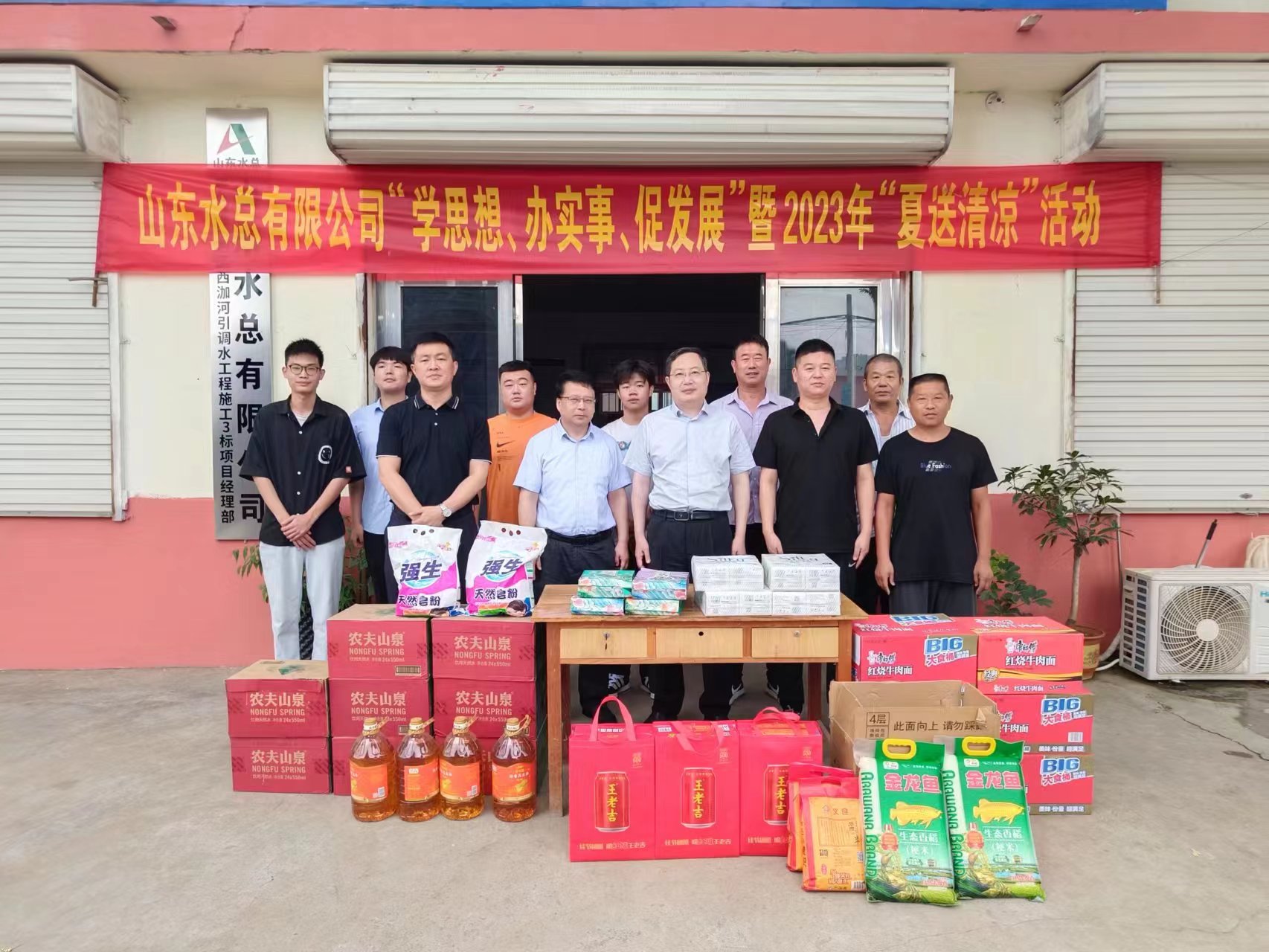 7月27日,公司党委委员、副总经理杜贞义等一行人到第六分公司枣庄市市中区西泇河引调水工程项目开展“学思想、办实事、促发展”暨2023年“夏送清凉”慰问活动。