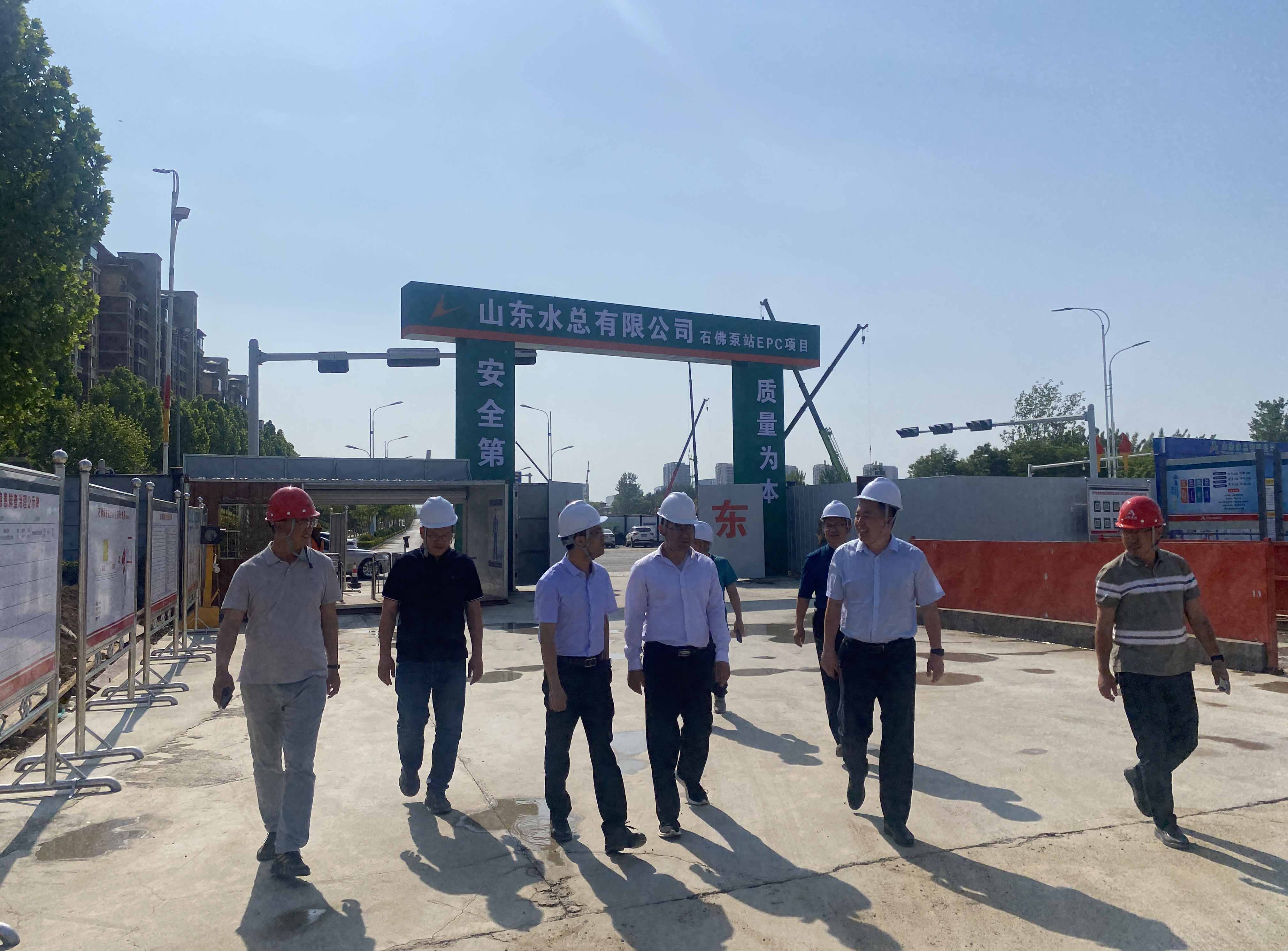 近日,公司党委副书记、董事、总经理靳文硕,党委委员、副总经理袁英杰,安全总监郭法文一行到济宁市老运河城区段排涝能力提升工程(石佛泵站)项目检查调研工作。