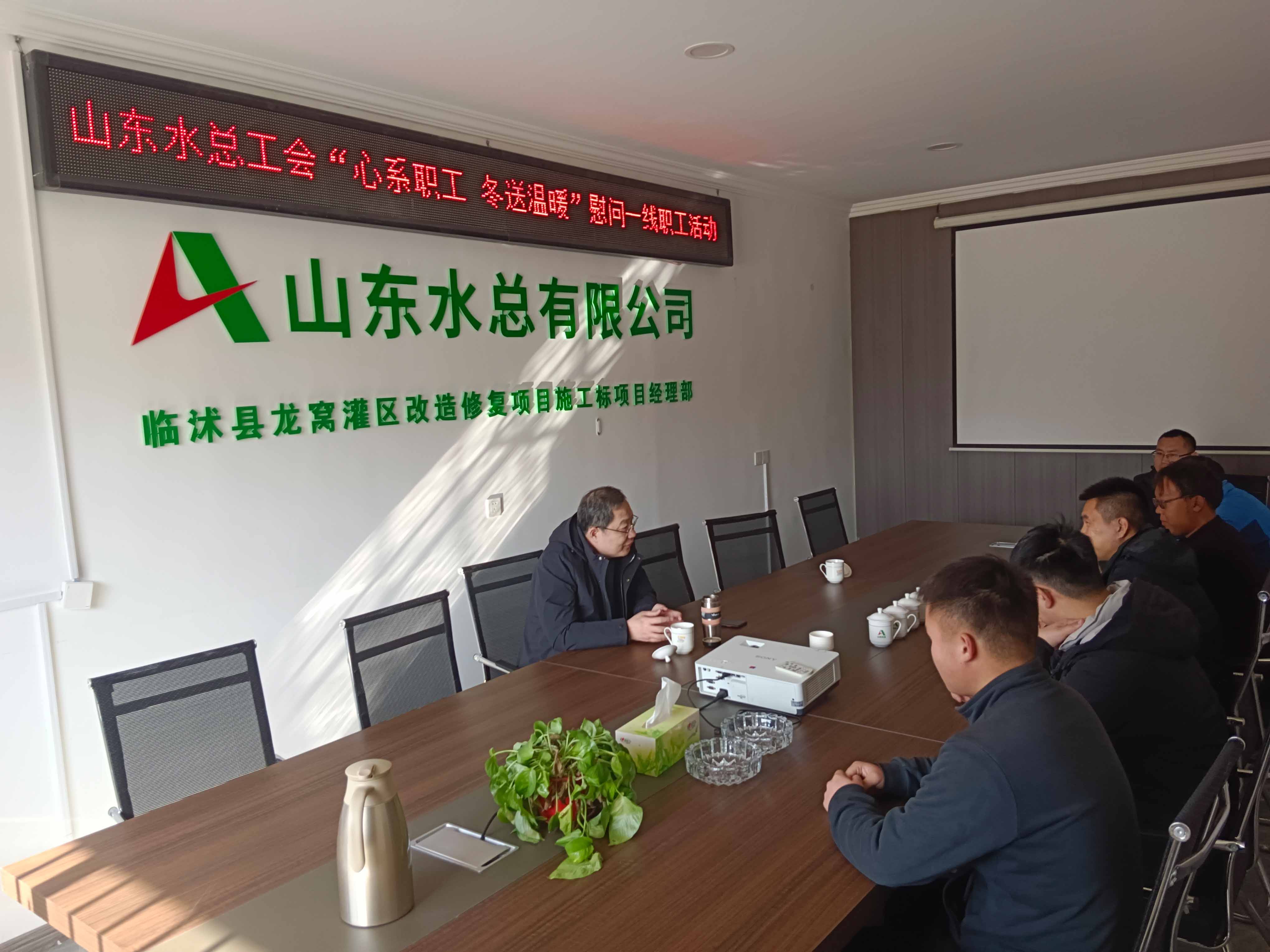 1月17日,公司党委委员、副总经理杜贞义一行到第三分公司临沭龙窝灌区改造维修项目开展“心系职工 冬送温暖”慰问一线职工活动。