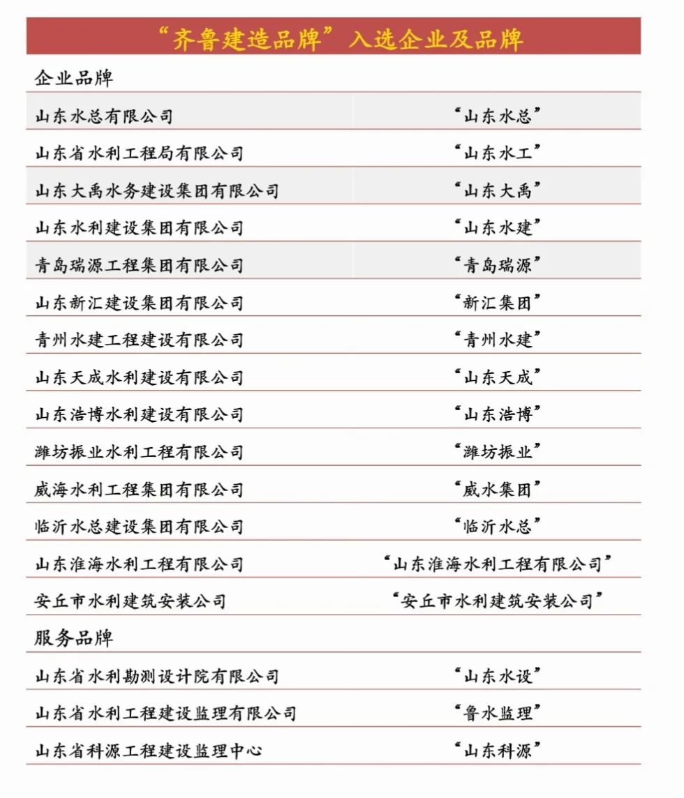 “齐鲁建造”品牌作为山东省推动建筑业品牌化、高端化发展的重要战略抓手,旨在树立行业典范,激励企业强化技术、管理与品质创新,全面提升区域建筑业在全国及国际市场的核心竞争力,是我省建筑业转型升级、增强综合实力的关键举措。此次入选,既是对公司多年来在水利工程建设、质量安全管控、技术研发创新等领域卓越表现的高度认可,更是对公司品牌价值与行业影响力的权威背书。