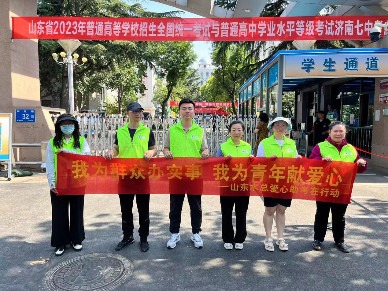 志愿服务活动地点设置在济南七中考点。公司志愿者们分为三组,一组在考点附近人流量、车流量大的路口,设置交通劝导点,协助交警引导过往车辆和行人有序通行,助力考生顺利赴考;二组引导陪考家长在指定位置休息等待,确保考场周围安静和谐,秩序井然。三组在帐篷休息区为考生家长免费提供矿泉水、绿豆汤等,为炎炎夏日焦急等待的家长们送去一份清凉与关爱。