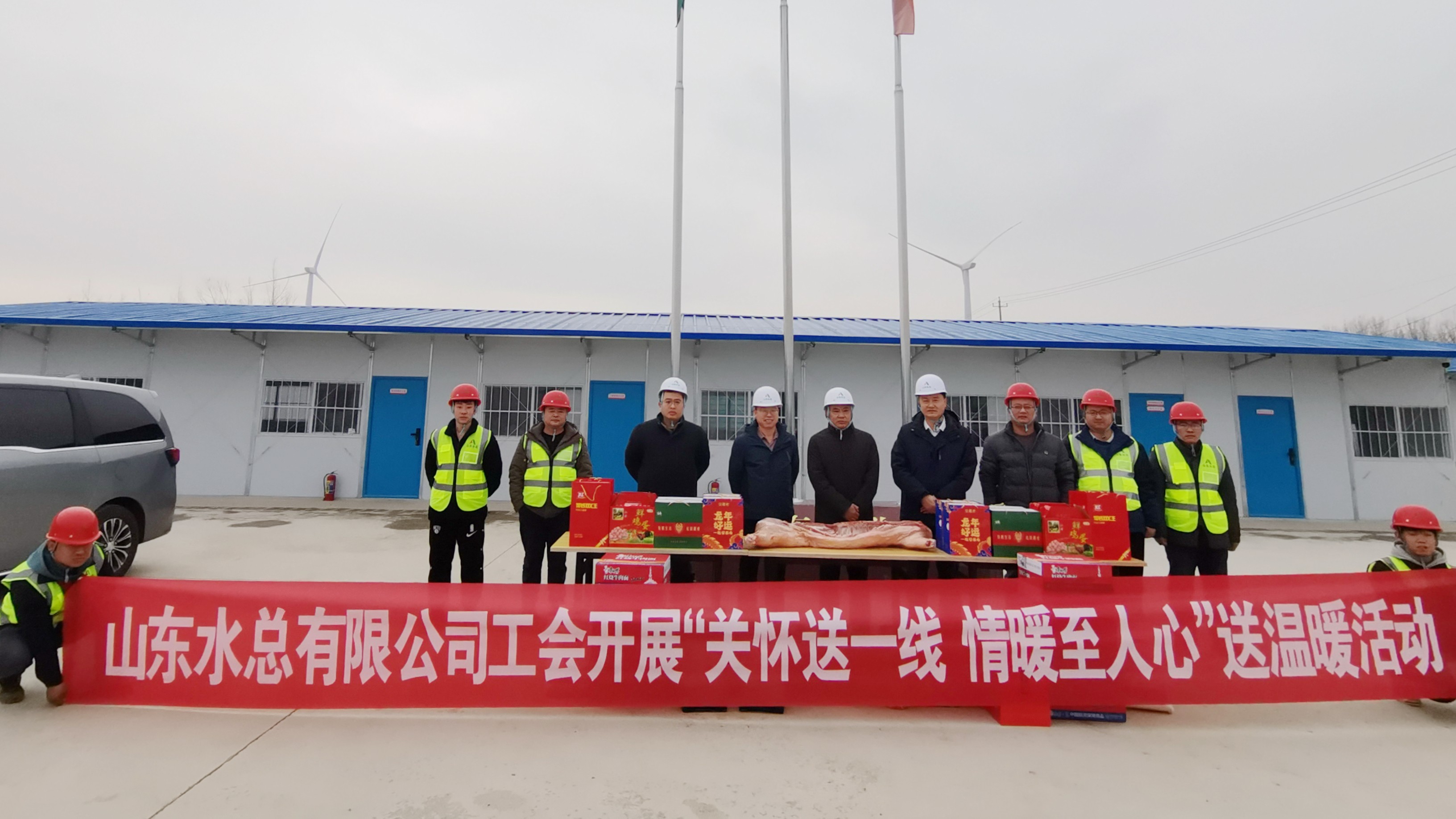 1月16日,公司党委书记、董事长刘深远一行到基础有限公司庆云县大淀拦河闸蓄调水项目开展“关怀送一线 情暖至人心”送温暖活动。综合办公室、安全管理部相关人员陪同慰问。