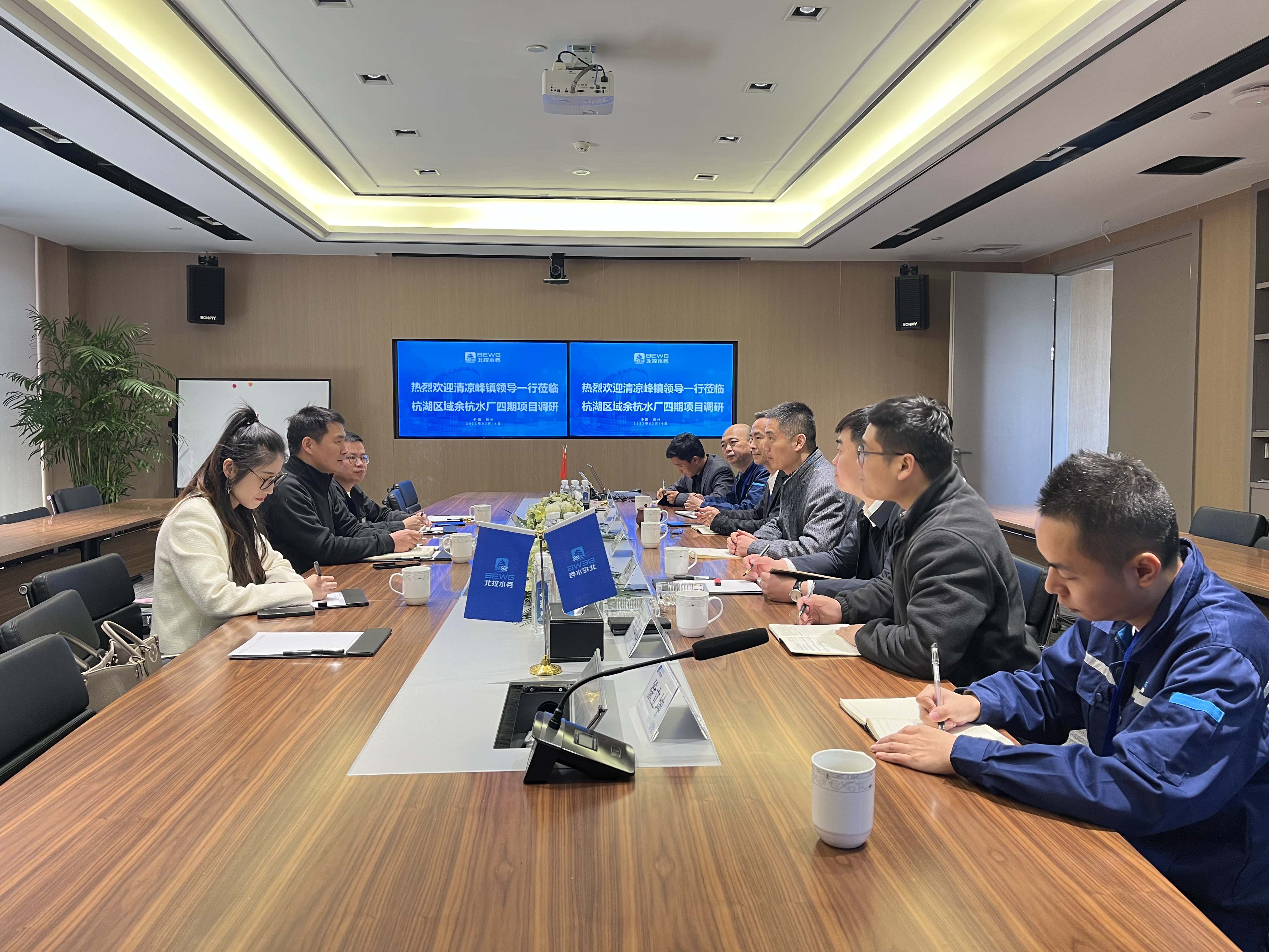 3月14日,杭州鲁润公司联合临安区清凉峰镇政府党委副书记、镇长卞迎翔一行到访北控水务集团杭湖区域公司余杭水厂四期项目参观调研。三方就清凉峰镇污水处理厂项目合作事宜进行充分交流。