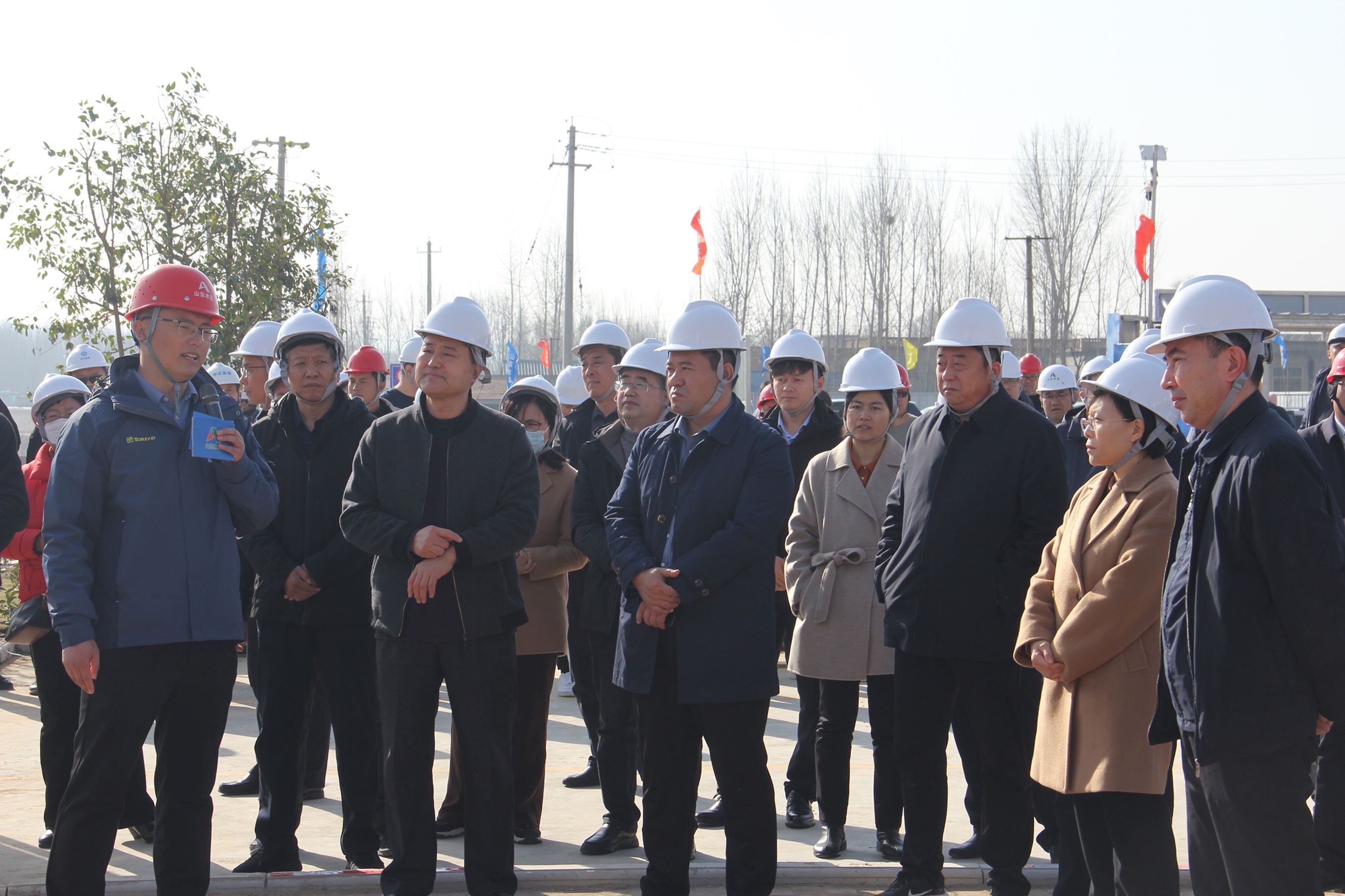 12月8日,全省水利安全生产风险管控“六项机制”建设现场观摩培训在泗水县召开,公司承建的泗水县岳陵拦河闸工程作为全省唯一在建工程迎接了此次观摩活动。山东省水利厅党组成员、副厅长尹正平,济宁市人民政府副市长白平和,山东省水利厅总经济师郭忠,济宁市城乡水务局党组书记、局长刘继慧,泗水县委书记赵鑫,全省16市水行政主管部门以及省流域中心、省水文中心、省调水中心、干线公司分管安全生产的负责同志,厅监督处、省水科院等100余人参加观摩会。公司党委书记、董事长刘深远、安全总监郭法文等一行陪同观摩。