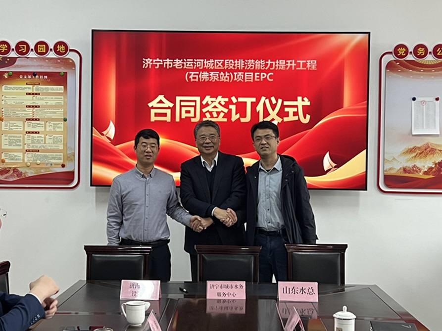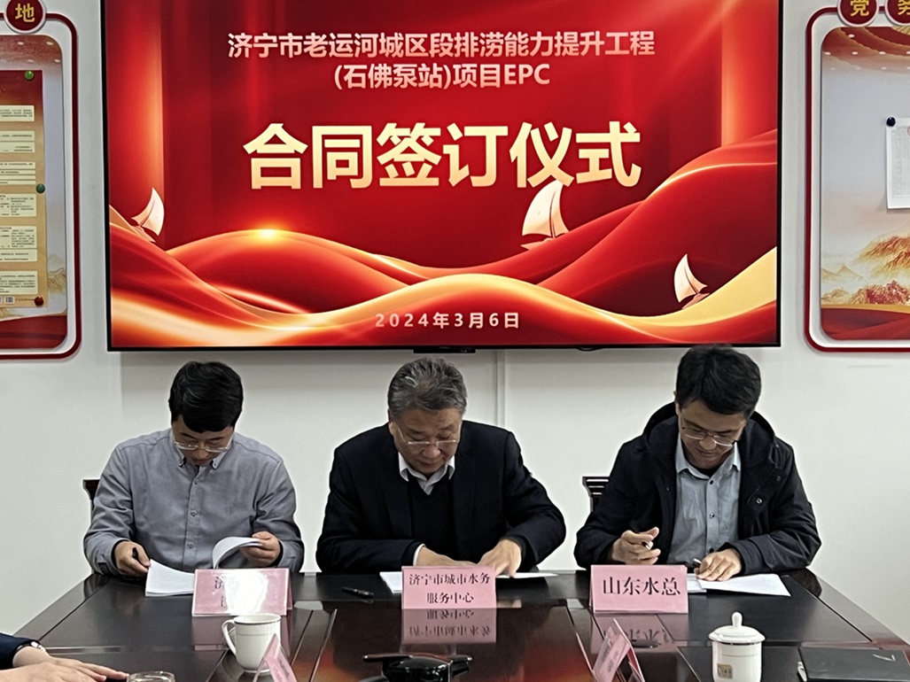 3月6日上午,第七分公司中标的济宁市老运河城区段排涝能力提升工程(石佛泵站)项目EPC合同签订仪式在济宁市城市水务服务中心举行。济宁市城乡水务局党组成员、副局长王卫东,济宁市城市水务服务中心主任闫新元,第七分公司总经理韩栋、副总经理常征等参加了签订仪式。