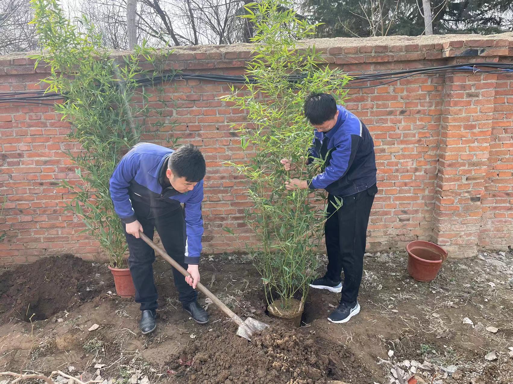 “党建红”引领“生态绿”,为践行绿色发展观,恰逢第46个植树节来临之际,3月11日上午,曲阜驻地党支部在文化长廊两边开展植树活动。