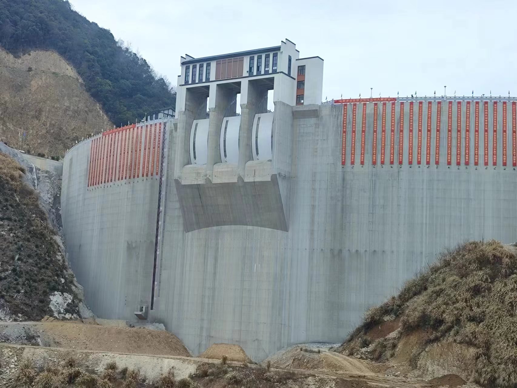 在临安区委、区政府的正确领导下,在临安区水利水电局和工程建设指挥部的精心组织和指导下,3044永利作为社会资本方与政府股东方临安水利开发公司迅速完成了项目公司组建及参建单位招标工作,高标准、高质量推进项目建设,将安全文明标准化、党建引领和科技创新融入到项目建设的全过程,先后荣获了“浙江省水利文明标准化工地”和“党建进工地”示范工程,获得了1项水利行业工法、6项发明专利和9项QC成果,2项科技成果被工信厅立项。特别是施工期间克服了新冠疫情、超长汛期、料场重大设计变更及高坝、拱坝施工技术难度大等不利因素影响,历经1650天的日夜奋战,终于迎来了双溪口水库下闸蓄水这一重要时刻。
